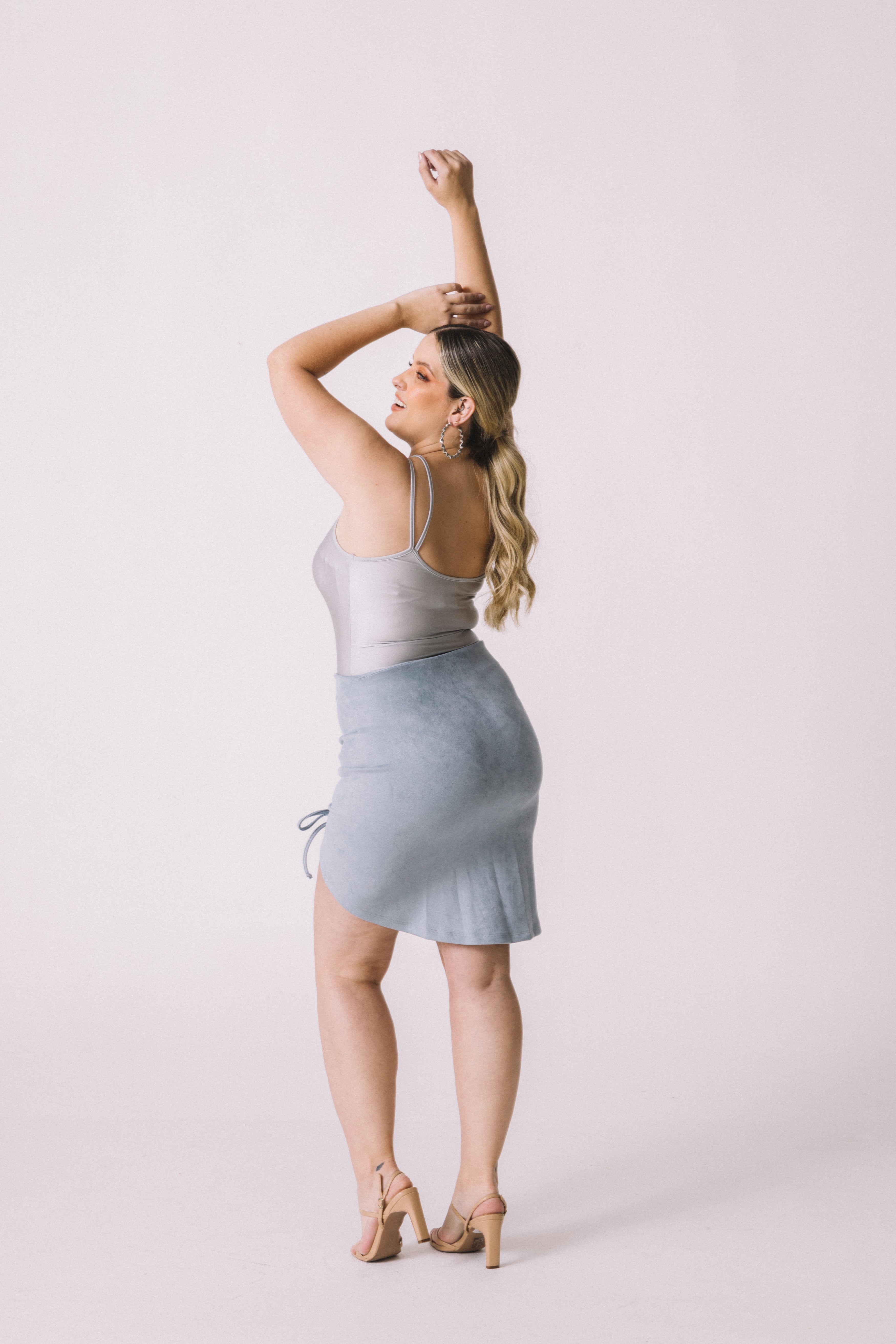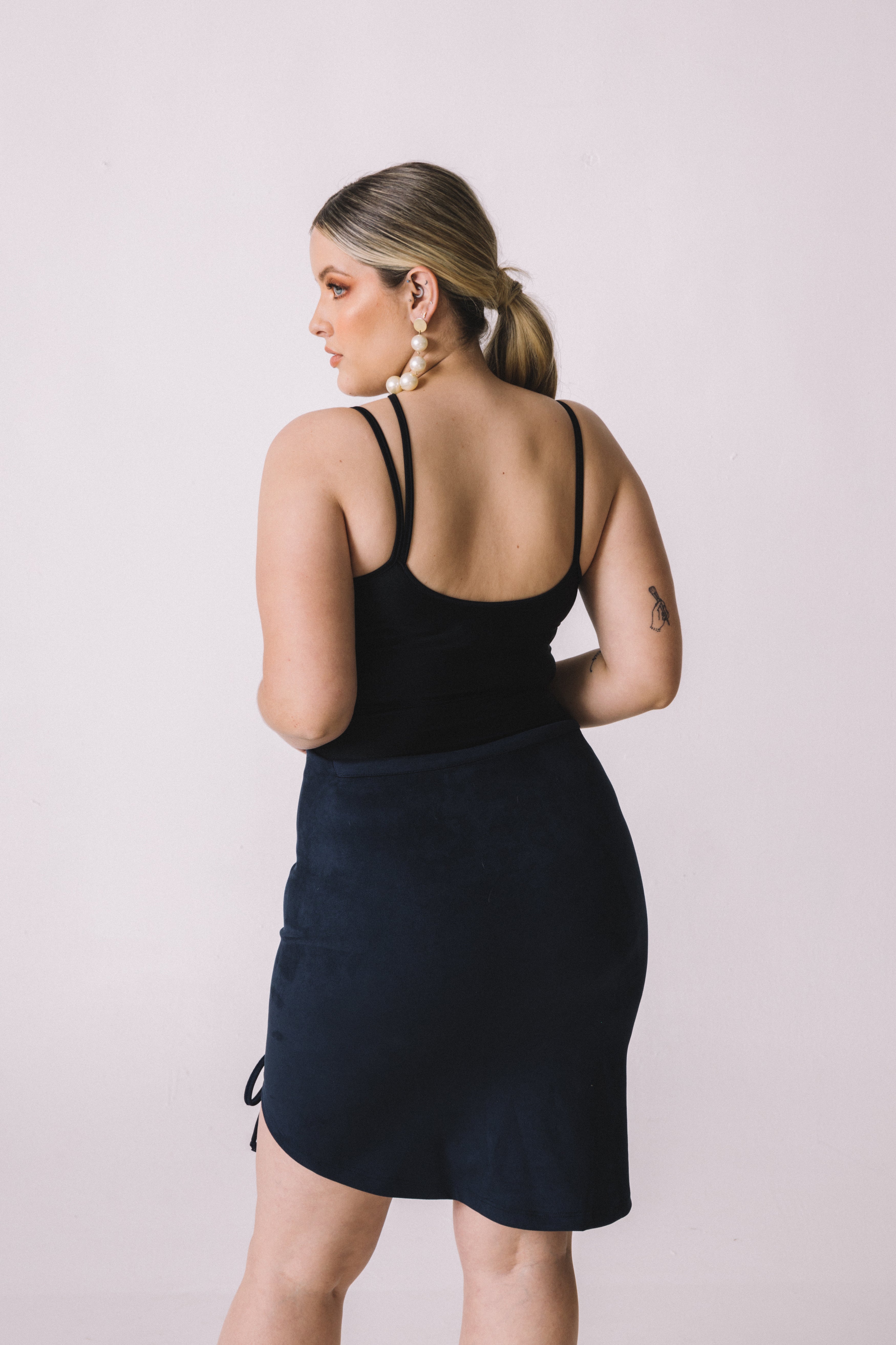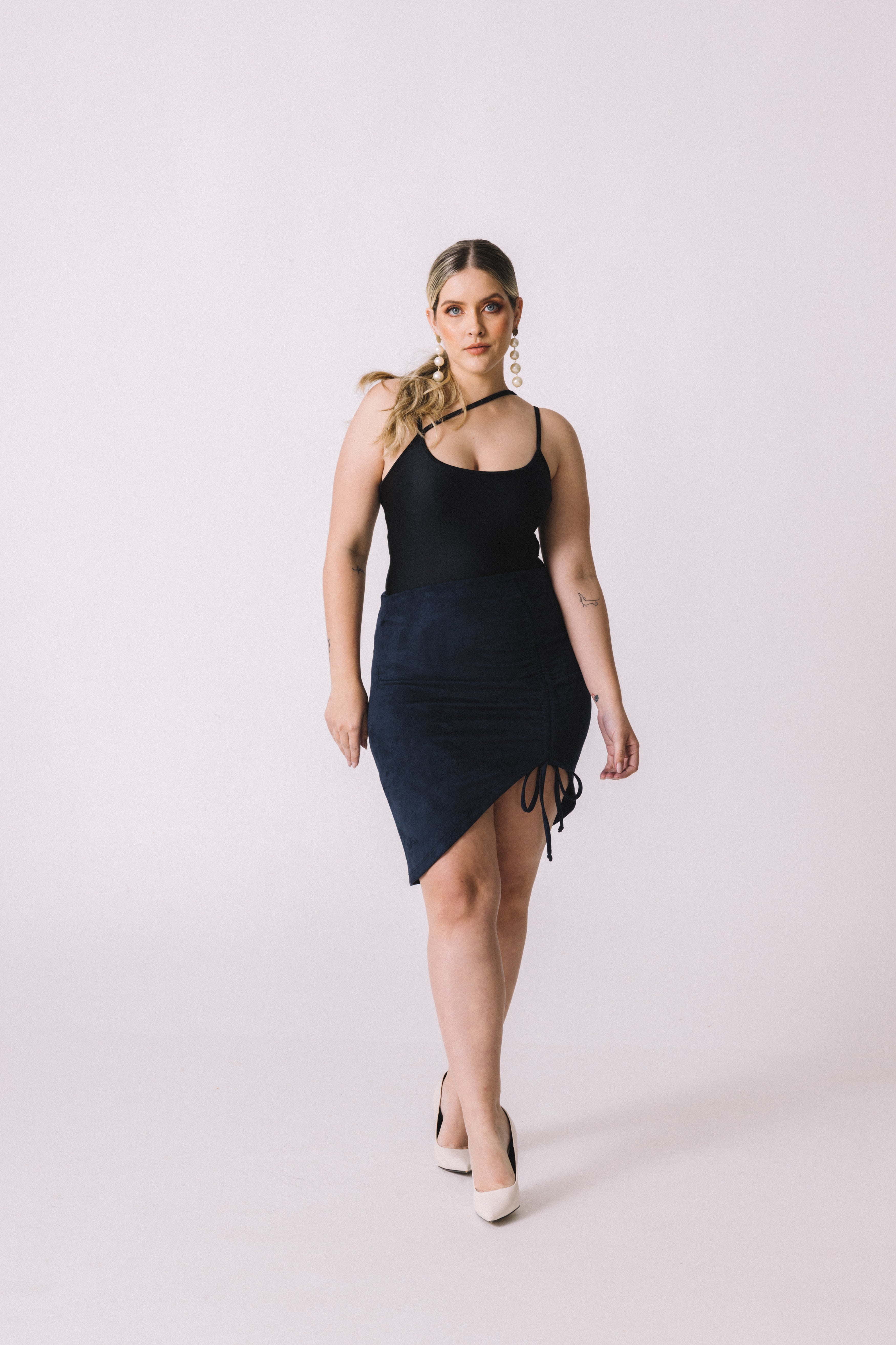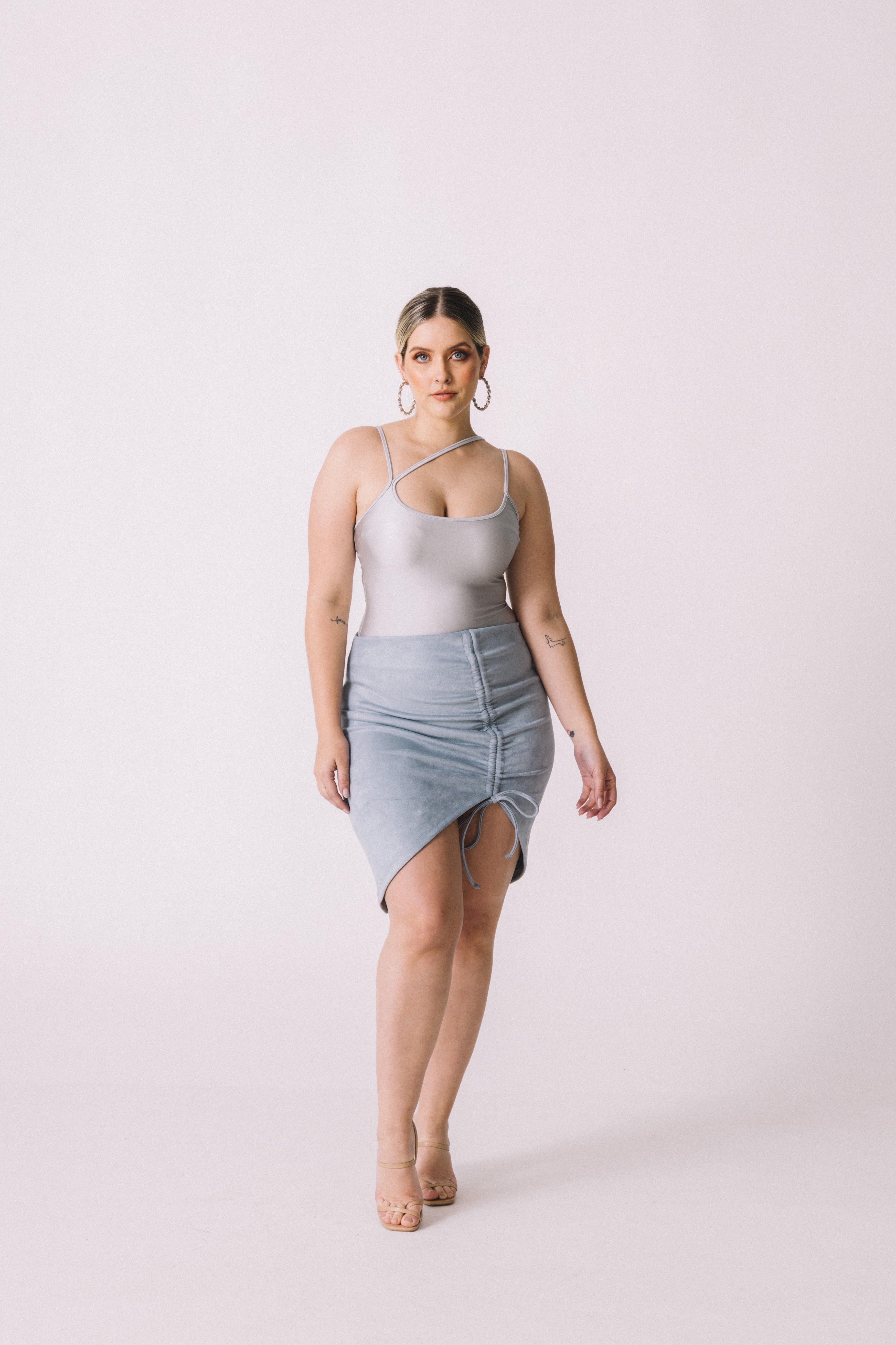 Set moderno y femenino compuesto por una falda con ajuste lateral que permite adaptarse a la silueta, y un corte asimétrico que aporta dinamismo y estilo. Perfecto para quienes buscan un look actual, versátil y con un toque de originalidad