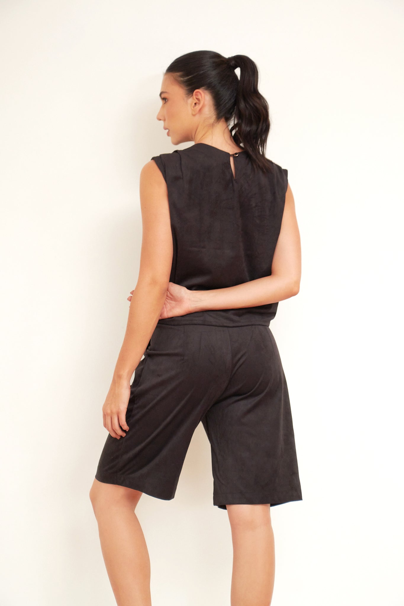 Set fresco y moderno que combina una blusa sin mangas con detalle drapeado en el hombro, aportando un toque de sofisticación al diseño minimalista. El short tipo capri complementa el conjunto con una silueta cómoda y versátil, ideal para climas cálidos y looks casuales con estilo.Set fresco y moderno que combina una blusa sin mangas con detalle drapeado en el hombro, aportando un toque de sofisticación al diseño minimalista. El short tipo capri complementa el conjunto con una silueta cómoda y versátil, ideal para climas cálidos y looks casuales con estilo.