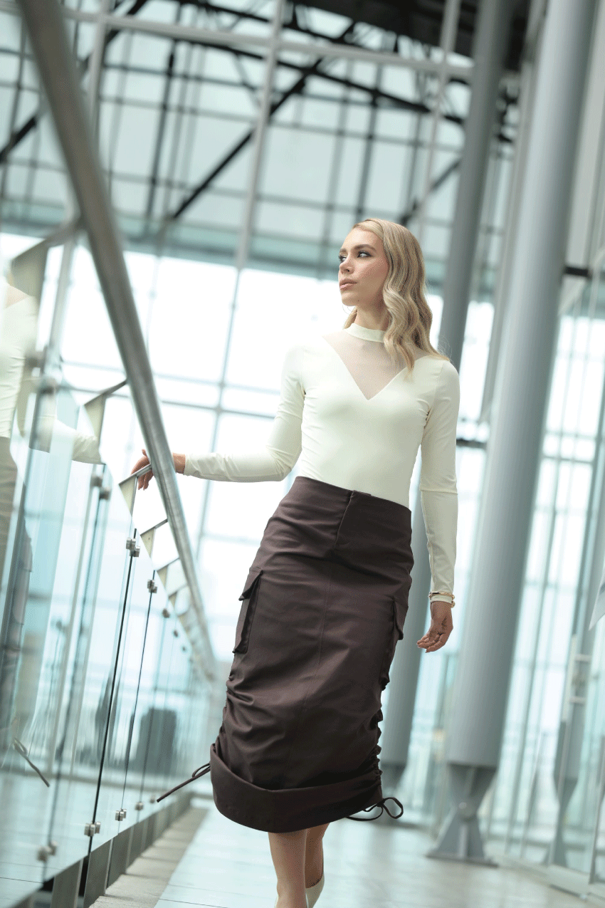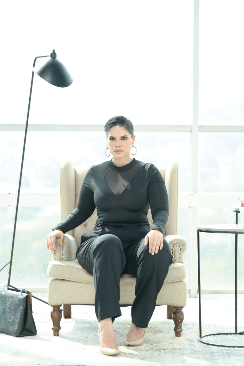 Este elegante body en microfibra combina comodidad y sofisticación en una prenda imprescindible. Presenta un diseño tipo halter de manga larga que estiliza la silueta, complementado con un cuello alto en Mallatex que añade un toque moderno y refinado. Su sistema de cierre en lágrima en la parte posterior del cuello aporta un detalle delicado y funcional. Forrado y encarterado para un ajuste perfecto, es ideal para looks que requieren un equilibrio entre sensualidad y estilo contemporáneo.